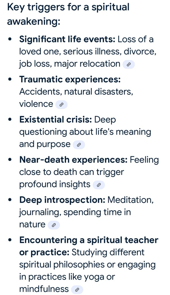 Some people become or are spiritually aware at a very young age while others waken at later stages in their lives but there does appear to appear a set of circumstances that seem to trigger an awakening and this was certainly true for me